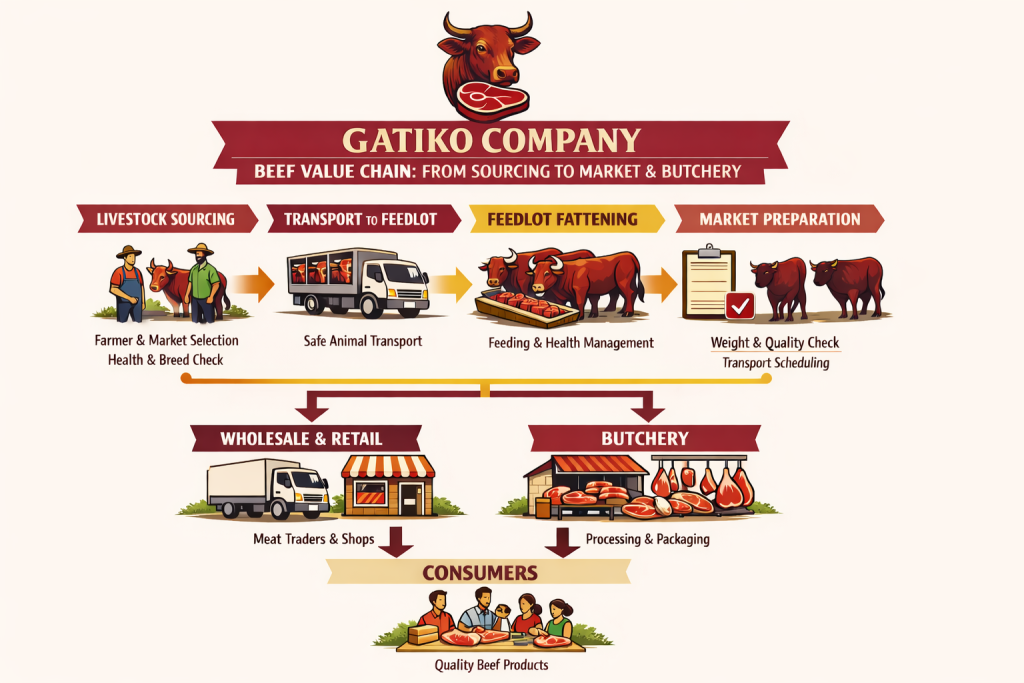 Gatiko Company Ltd is a leading livestock and beef production company dedicated to sustainable farming, quality cattle supply, and empowering local farmers across Kenya. We combine modern practices with community partnerships to deliver premium livestock solutions and strengthen the beef value chain.