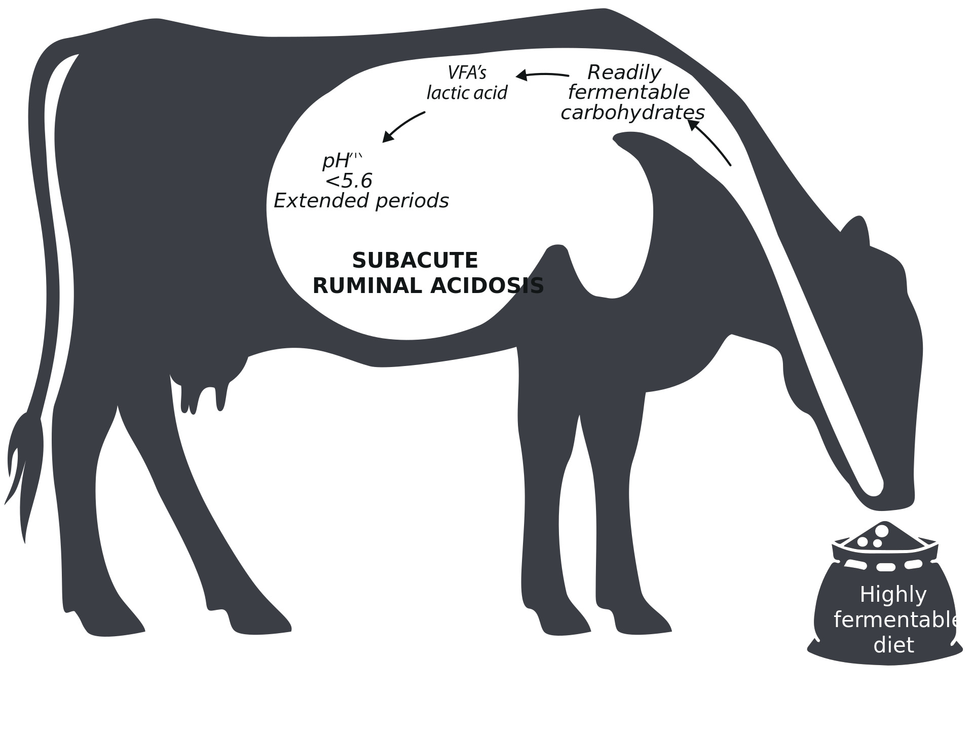 - Decreased Rumination: Less cud-chewing time, leading to reduced saliva production (a natural rumen buffer).